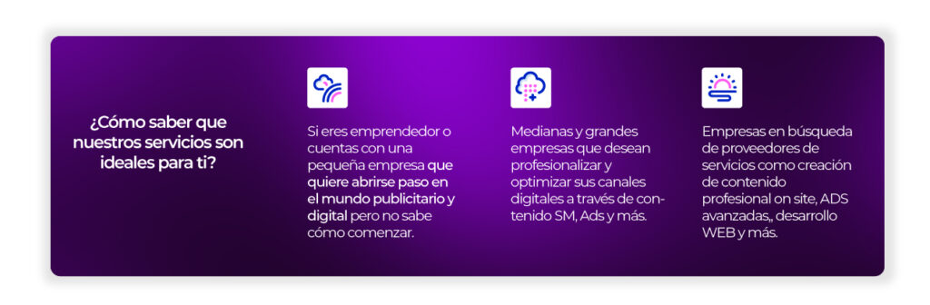 Porque somos humanos, accesibles, estamos dispuestos a ayudarte y reconocemos la importancia que tiene cada marca. Nuestro enfoque humano se ve reflejado en nuestro lema «tú calma es nuestra victoria» y eso es lo que queremos brindarte, resultados posibles, proyección de crecimiento increíble.